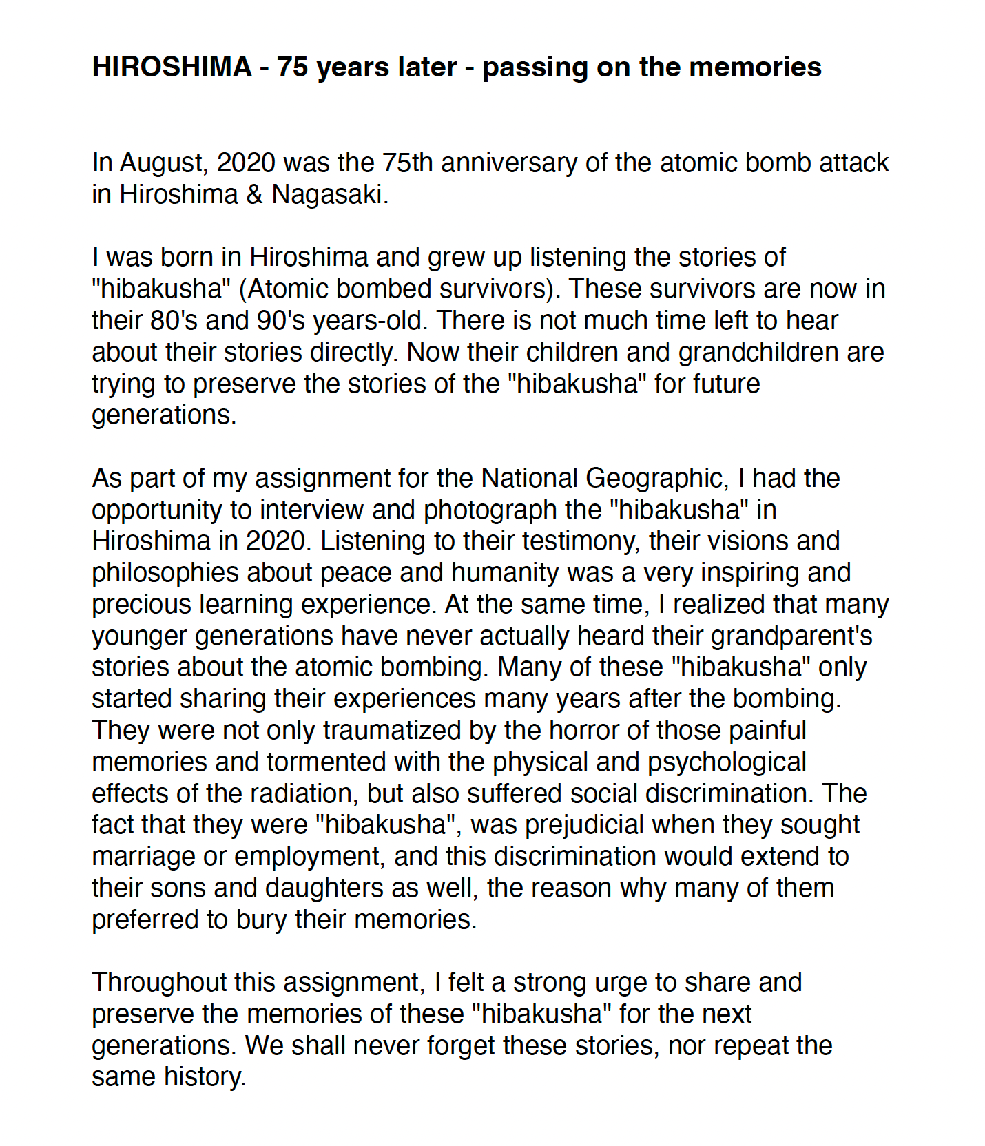 HIROSHIMA, 2020 -75 years later-